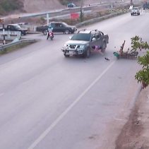 A driver that hit a mother and her children who were riding a motorbike and then tried to escape the scene has been heavily criticised online after videos taken by two female students who chased him down the road went viral.