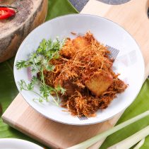 ปลากะพงทอดขมิ้น: ปลากะพงจากแหล่งน้ำธรรมชาติของท้องถิ่นไทย มีน้ำหนักถึง 8 ขีด เนื้อแน่นและสดสะอาด นำมาทอดกับสมุนไพรขมิ้นจนได้สีเหลืองทองและกลิ่นหอม เสิร์ฟคู่กับน้ำจิ้มซีฟู้ดรสเด็ด
