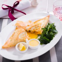 เซียที่มีชื่อว่า ทูน่าบริก ซึ่งมีหน้าตาคล้ายกับแป้งเครปบางกรอบ ห่อด้วยทูน่าปรุงรสและไข่แดงดิบ สามารถปรุงรสเพิ่มเติมด้วยซอสมาโยเนสรสเผ็ด มะนาว และ เกลือหิมาลัย