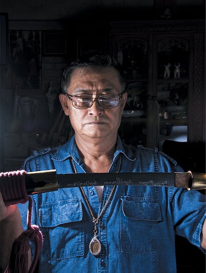 I drive around the suburb of Hang Chat in Lampang, stopping every few minutes to ask another person to point me towards the town’s sword maker. Down a rural road, past a Tesco Lotus sign, some noodle shops, and a field of horses, I find a sign that reads “Hit the Knife Group Station.” It is the shop and home of Bunthun Sitthipaisan, one of Thailand’s last and most renowned sword makers.