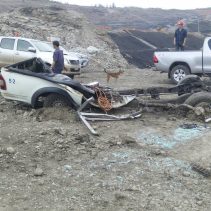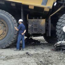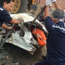 On May 25, rescue services were called to the construction site of Maemoh power plant, Lampang, after a giant construction truck ran over a pickup.