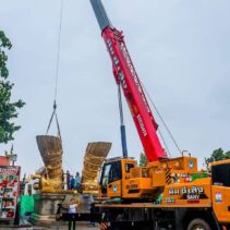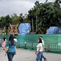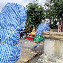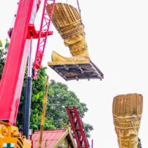 There was an immediate public outcry when the feet of a 19 metre statue of Vaisramana, one of four Buddhist heavenly kings, also known as a god of war and god of the north, arrived to be erected in front of Mae Hia’s Wat Doi Kham.