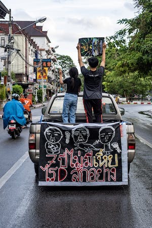 With daily record breaking COVID cases and minimal access to quality vaccines, the people of Thailand have a lot of reasons to protest. At times, a protester’s motivations can be challenging to understand. Some say their reason for joining the carmob is for democracy while others say they attend for vaccine accessibility. While the protestor’s interests in joining the demonstrations differ from person to person, the most common for attending the protests is the removal of Prime Minister Prayut.