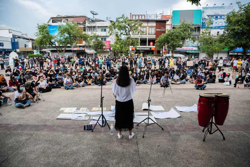 On Wednesday, at 5pm at Tha Pae Gate hundreds of people gathered dressed in cosplay attire, wearing masks and holding signs expressing their individual wishes for sovereignty. The members of this flash mob demonstrated for freedom in unique fashion; Local police were closeby.