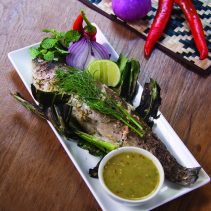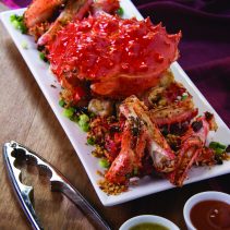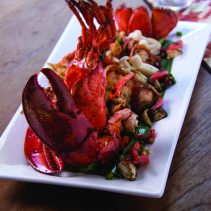 เริ่มต้นกับเมนูซิกเนเจอร์ของร้านอย่าง ปูอลาสก้าทอดพริกเกลือ เสิร์ฟปูอลาสก้าตัวโตๆเต็มๆคำ พร้อมกับน้ำจิ้มซีฟู้ดรสเด็ดของร้าน จากนั้นมาต่อด้วย ล็อบสเตอร์ผัดไข่ซอส X.O. ซึมซับกลิ่นอายของทะเลผ่านเมนูกุ้งยักษ์จ้าวแห่งมหาสมุนทร ผสมผสานการปรุงรสสไตล์จีนเล็กน้อย ทำให้ได้รสสัมผัสที่กลมกล่อมหวานมันลงตัว และโปรดอย่าพลาดเมนูหอมกลิ่นสมุนไพรไทยนานาชนิดอย่างปลาเทร้าท์อบสมุนไพร ก่อนจากลาตบท้ายด้วยเมนูพื้นเมืองเพื่อสุขภาพอย่าง ตำขนุนสมุนไพร ที่ให้รสชาตินุ่มลิ้น และเน้นเนื้อขนุนเต็มจาน