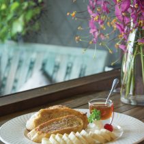 นั่งจิบไวน์ หรือเครื่องดื่มพิเศษ แล้วมาเริ่มต้นเมนูใหม่ล่าสุดของร้าน กับกองทัพอาหารทะเลด้วย ซีฟู้ด อาราเบียต้า เมนูเรียกน้ำย่อยที่ประยุกต์มาจากเมนูสปาเกตตี้อิตาเลี่ยน โดยเพิ่มรสชาติเผ็ดของพริกขี้หนูเล็กน้อยลงไป ปรุงพร้อมกับใบโหระพาอิตาเลี่ยน ปลาหมึก หอยแมลงภู่นิวซีแลนด์ กุ้ง และหอยลาย รับประทานคู่กับขนมปังกระเทียม ต่อด้วย แผ่นเกี๊ยวอิตาเลียน ไส้เห็ดทรัฟเฟิล กับรีคอตต้าร์ชีส หรือแป้งพาสต้าอิตาเลี่ยนรูปทรงสามเหลี่ยมห่อเห็ดทรัฟเฟิลกับรีคอตต้าร์ชีส รสชาติกลมกล่อม หอมเครื่องชีส เสิร์ฟพร้อมกับผักโขมและกุ้งชิ้นโตที่ผ่านการผัดกับไวน์ขาวจนเนื้อฟู ถัดมาเป็น ซีฟู้ดชีสโรล หรือขนมปังหน้าครีมชีสและซีฟู้ด จัดวางคู่กับผักสลัดสด ส่วนใครที่ชื่นชอบสเต็ก โปรดอย่าพลาดเมนูเก่าแก่ขึ้นชื่ออย่าง บาบิคิว ซี่โครงหมูอบ สัมผัสเนื้อซี่โครงที่ผ่านการตุ๋น และอบในซอสบาบิคิวจนได้รสชาติกลมกล่อมหวาน และตบท้ายมื้อเป็นของหวาน เฟรนต์โทส ที่เหมาะรับประทานพร้อมกับชา กาแฟ และน้ำผลไม้ปั่น