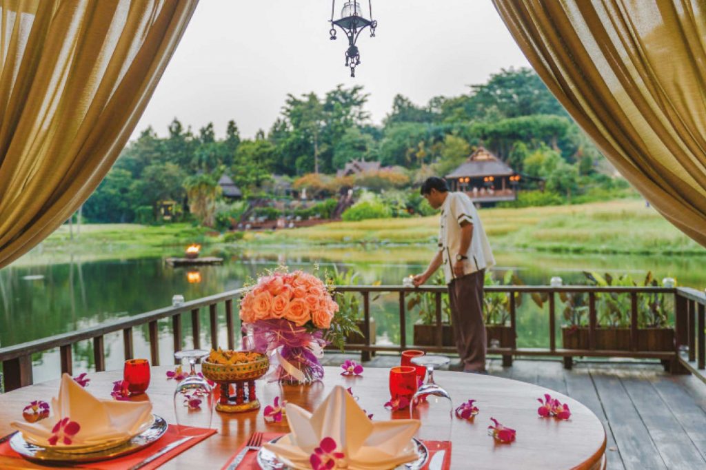 An exclusive, private dinner under the romantic candle-lit and the shimmering moonlight with the view of lush rice fields and lake, dive into an exquisite wine pairing five-course menu prepared by Four Seasons Executive Chef. Snap your finger and a butler is at your disposal. Want some entertainment? Performances like dance show and the delicate khim player are available on request. Prices start at 8,500 baht per couple, all in the utter privacy of the lone rice barn.