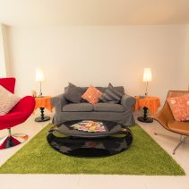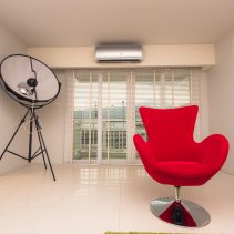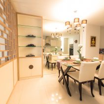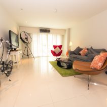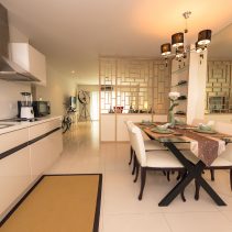 Open interior and fully furnished living room with stunning views of Doi Sutep, stylish study with custom built cabinets and ample working space, huge bed room with king size memory-foamed bed and large custom built modern wardrobe, beautiful dining set, built-in pantry and cabinets with electrical range, air-vent, microwave, refrigerator, 2 air-conditions and brand new electric water heater.