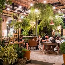 The actual building itself is modeled after a church in Europe which Nath’s father visited and admired. “Every detail of the decoration here is designed to make you feel at home,” said Nath, explaining that he lined the walls of the entrance of the restaurant with old pictures and clocks, so that clients can step into the building and instantly step back to a nostalgic time. The past fuses seamlessly with the present with lush tropical ferns dripping from the high ceilings and comfortable chairs and wicker lounges, perfect for an afternoon of work with a laptop, a lazy afternoon with a few craft beers with your lover or a night out with a group of friends. An outdoors courtyard, surrounded by trees and a landscaped garden, is the perfect backdrop to sit back and while away an evening to some love music.