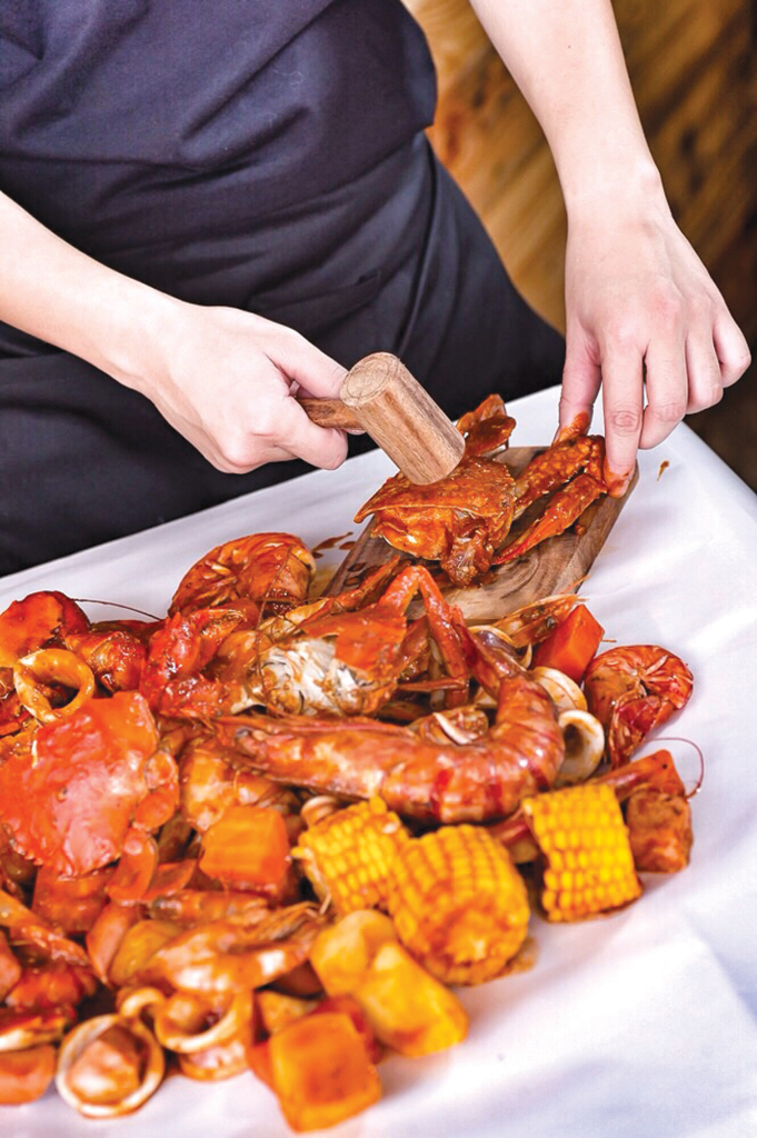 There is a new trend in town. Seafood platters that you eat with your hands. Armed with only a bib and sometimes a pair of gloves, tuck into an oversized platter of all types of seafood or a pile of freshly fried spicy prawns.