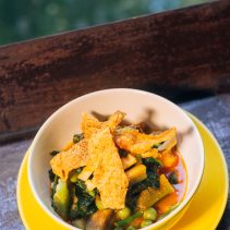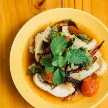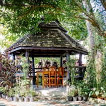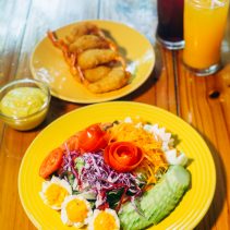 Before salads became so popular in Chiang Mai, there was Pui Baan Suan Salad Maejo which has been supplying Kasen Store with salads for over 20 years. When the next generation grew up they became interested in the business and decided to open a restaurant serving – three guesses! – salads, grown on their farm and served with a variety of proteins and their two signature dressings; clear and creamy. Today the restaurant has expanded beyond salads and also serves many family recipes including the smoked pork ribs with herbs, smoked Thai red tilapa with herbs, spicy lemongrass salad with prawns, spicy Thai red tilapa salad, Acacia omelettes and fresh shrimps in vegetable sour soup star. Two great desserts will have you wondering which to choose to end the meal, the millet and palm candy with sweet coconut milk or the aromatic banana syrup with sweet coconut milk.