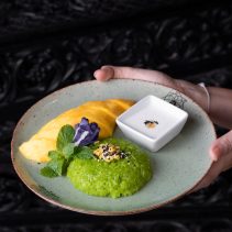 ปิดท้ายมื้อด้วย ข้าวเหนียวมะม่วง ขนมไทยยอดฮิตที่เหมาะแก่การรับประทานคู่กับเครื่องดื่มชา-กาแฟในบรรยากาศดีๆที่ “เขียวไข่กา”