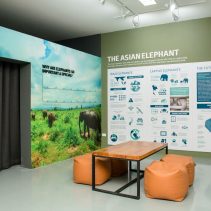 There is a media room where a five minute video will give you some back ground on the challenges faced by Asian elephants as well as an interactive fun facts wall, “Elephant poop is more useful than you thought! Species such as banded mongoose, velvet monkeys, baboons and countless species of insects feast on elephant poop – yum!”