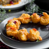 Butter Shrimp with Salted Eggs: Inspired by Singaporean cuisine which features many salted egg dishes, Chef Dan has uses Thailand’s famous Chaiya salted eggs to make a paste used to fry shrimps in batter.