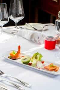 Start off with blowtorched tiger prawns and salmon as an appetiser which arrives aromatic with spices and tasty with sweet and sour flavours in a spicy chili vinaigrette. Next move on to the broccoli and green curry veloute which offers smooth tastes of coconut milk gently blended with Thai green curry while the mushroom soup with truffle oil gives diners something mellow and truly magnificent to savour.