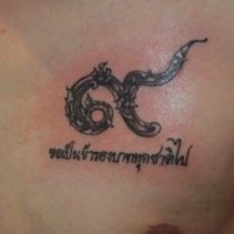 “I wanted to do merit and also wanted to honour His Majesty in a personal way, I feel great to have had this opportunity,” said Jirawat Kasikarangkoon, 29, who now is a proud owner of an elaborate chest tattoo in the shape of the Thai numerical nine.