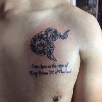 “I will never forget that this tattoo is a representation of the father of our land,” said Maneeporn Jankra whose shoulder now features the Thai number nine, the date of His Majesty’s death as well as a message hoping to be a citizen under the king for many lifetimes.
