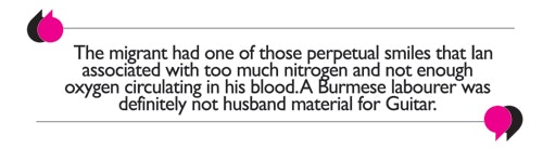 Guitar – yes, as in the musical instrument – was the name of Toi’s niece, who was twenty-one, and had just finished her university education. Ian pulled some strings and got her a job at the golf course in the customer services department. If nothing else, she would be mixing with the right set of people as women often married men from the workplace. There was a secret hope that she might meet a young, rich son of a club member, fall in love, and live happily ever after. The nickname Guitar caused Toi a bit of cultural indigestion. She saw it as yet another trendy Bangkok flutter of butterfly wings that sent ripples washing over and submerging the old Lanna tradition.