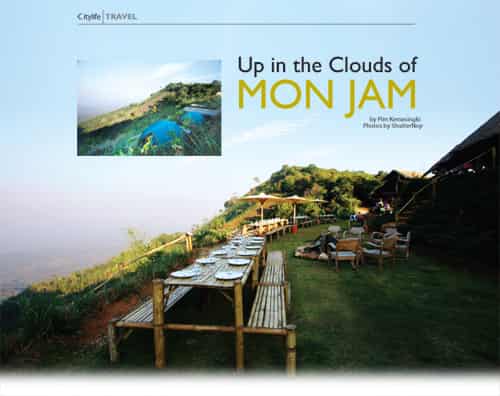 A warm cup of aromatic coffee in hand, perhaps a lover’s palm in the other, one can simply sit and gaze for hours at the ever-changing views in front, below, above and around. Perched high on a ridge facing the valley of Chiang Mai, with Mae Taeng’s flat basin leading up towards the majestic heights of Chiang Dao, Mon Jam is the newest offering from His Majesty the King’s Nong Hoy Royal Project.