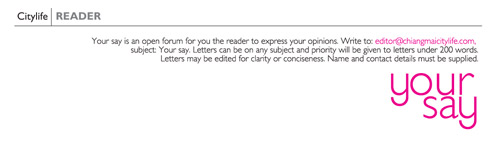 I had such great times at the Bollywood Night and the Latin/Salsa night which Citylife organised. [Ed. The events were organised by Mandarin Oriental Dhara Dhevi, we worked with them on publicity.] As much fun as I always have at your ladies’ nights as well. I was talking to some friends and we thought we would get in touch together and ask if Citylife would, pretty please, organise a singles night sometime. We girls have a hard time finding decent men to date or just to go to the movies with. Please consider this and help out the forlorn and single here in Chiang Mai.