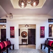 The decoration and soft furnishings showcase local Lanna design and tapestries and the private couple and triple rooms for Oil Massage are decorated with paintings by local hill tribe artists, showcasing scenes of daily life from their communities.
