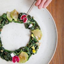 Rice is foremost in Thai cuisine, and the ‘roasted scallop’, served with a crispy rice salad and raw mango is the perfect beginning to the meal. “Hoi Shell Klang Na translates to ‘scallops in the middle of rice paddies’ – what it is like to enjoy the flavours of the ocean in the middle of the rice paddies? That’s what we’d like you to experience,” smiles Ni Putu Jeniari.