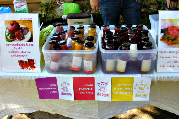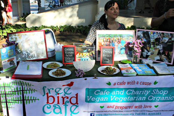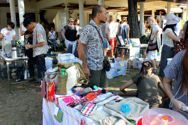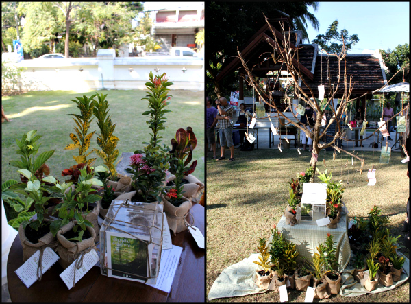 There were many eco-friendly and organic products on offer and various artworks for sale at the event. Some of the goods on offer were fresh avo and pesto bagels from Bird’s Nest, Kajana handmade cotton cloths, Akha Arma coffee, dip-dye hand-made notebooks, artwork from Matoom Art Space. There was also an exhibition and a small workshop from the Forest Restoration Research Unit at Chiang Mai University and the Tree Doctor Volunteer Project from Mae Jo University.