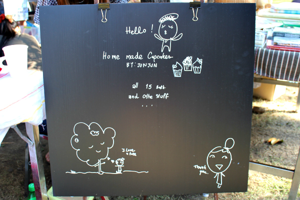 A cute sign for cupcakes: “…all 15 Bath and othe stuff… I love a tree.”