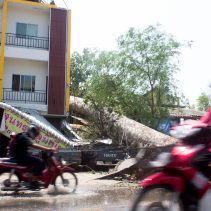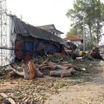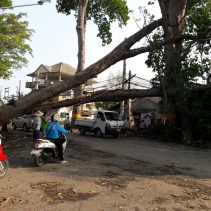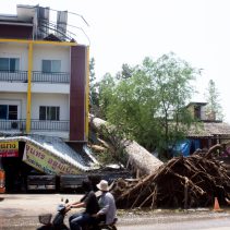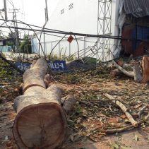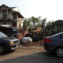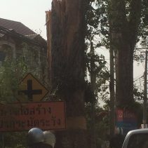 On May 17, several large, ancient Yang Na trees on the old Chiang Mai-Lamphun Road were destroyed in the storm. Some falling down, others being destroyed by the storm. Some of these trees are believed to be over 100 years old.