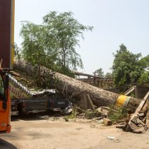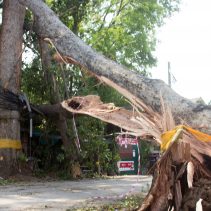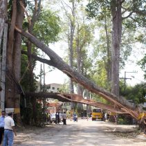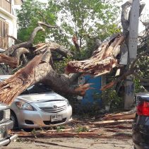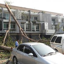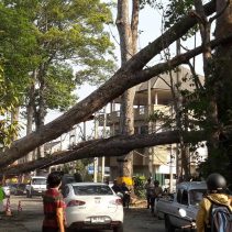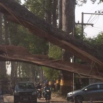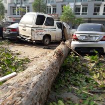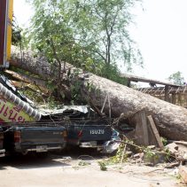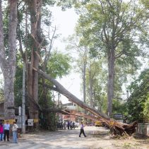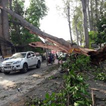 On May 17, several large, ancient Yang Na trees on the old Chiang Mai-Lamphun Road were destroyed in the storm. Some falling down, others being destroyed by the storm. Some of these trees are believed to be over 100 years old.