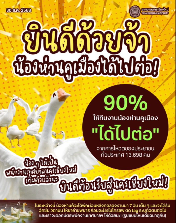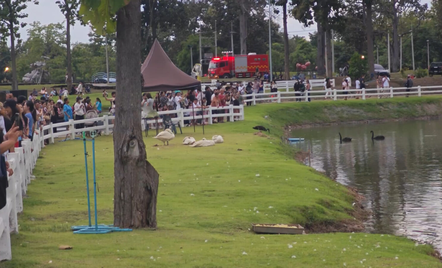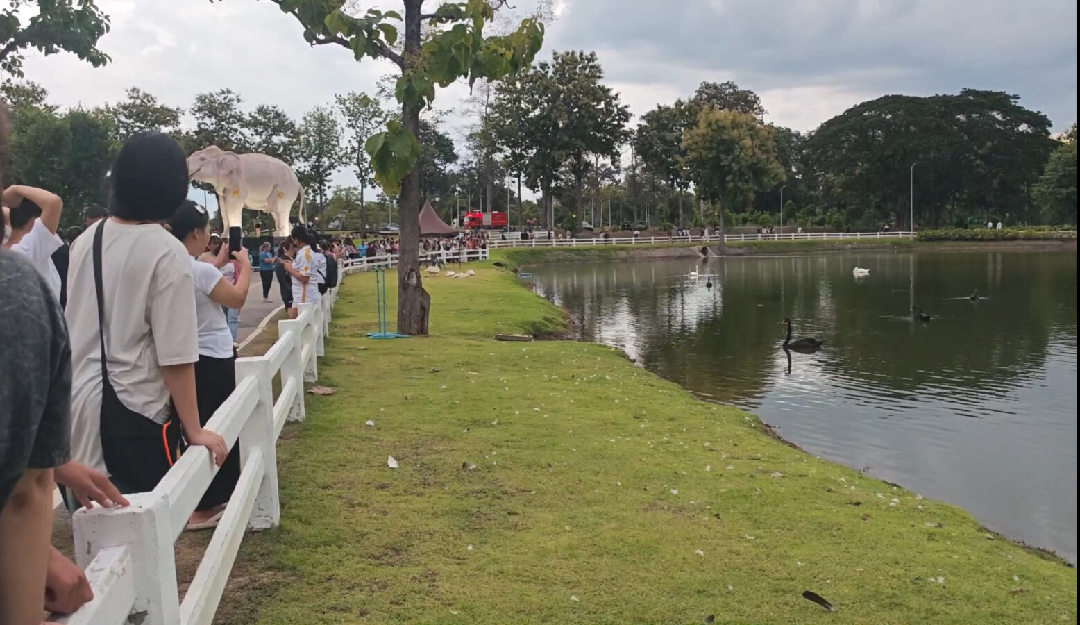 As to the Provincial Administrative Organisation (PAO), which released eight black swans and two white swans in the Chiang Mai Chaloem Phrakiat Park lake, they too have reported great numbers of visitors, especially after school and on weekends.