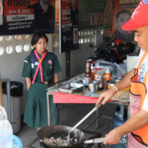 According to members of his continuance, Manas is seen each morning before work setting up a stall in front of his house where he sells food he himself cooks. The lunch boxes sell for 35 baht each and many of his customers include teachers, students and neighbours.