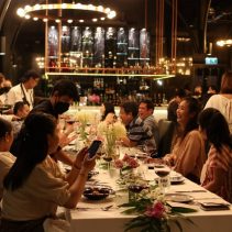 The cruise continued down the Ping, stopping off for a delightful punch and wines as well as nibbles at the new Buri Sri Ping Hotel and a spectacular offering of French canapés and bubblies at the magnificent Le Crystal Restaurant before arriving at Cross Chiang Mai Riverside’s vast river facing lawn for even more Prosecco.