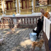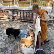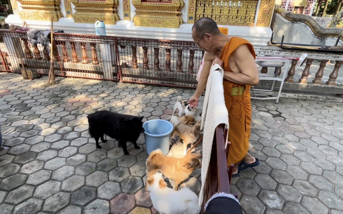 At Wat Mae Yuak in Chang Phueak, compassion comes with four legs. Behind the temple walls live more than 300 dogs—small, large, pedigree and local mixes—most of them abandoned, many literally dropped off in cages or cardboard boxes. Alongside them are nearly 90 cats, all now under the care of the temple.