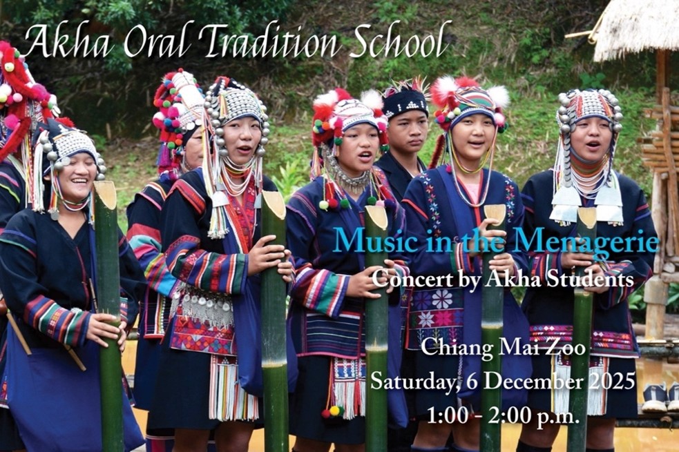 Cultural Crossroads Asia invites you to attend a very special concert by Akha students of the Akha Oral Tradition School in Ban Saen Suk, Chiang Rai. From 1 to 2 pm, they will perform for ‘humans’ the songs, musical instruments, and life lessons of their Akha ancestors in the Zoo’s Central Square.