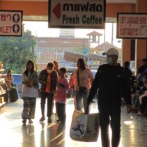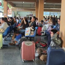 Chiang Mai Bus Terminal 3, or Arcade 3, was crowded with large numbers of people and tourists last night, waiting to board intercity coaches to travel back to work after enjoying holidays and New Year celebrations with their families and relatives. Most passengers had booked their tickets in advance and chose to travel at night so they could rest and sleep on the bus.