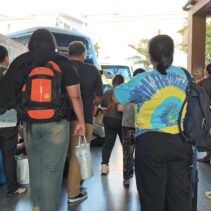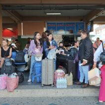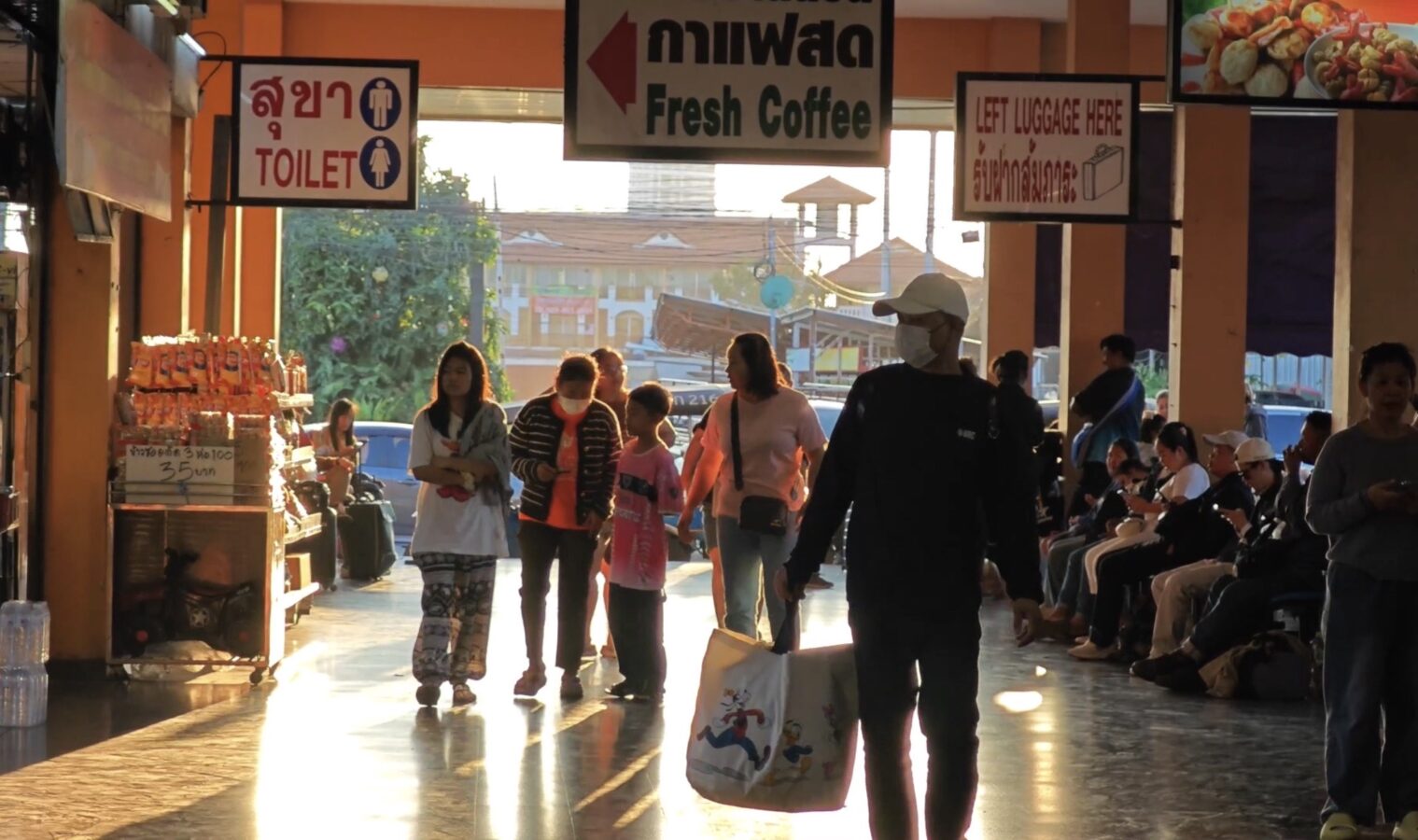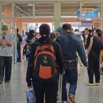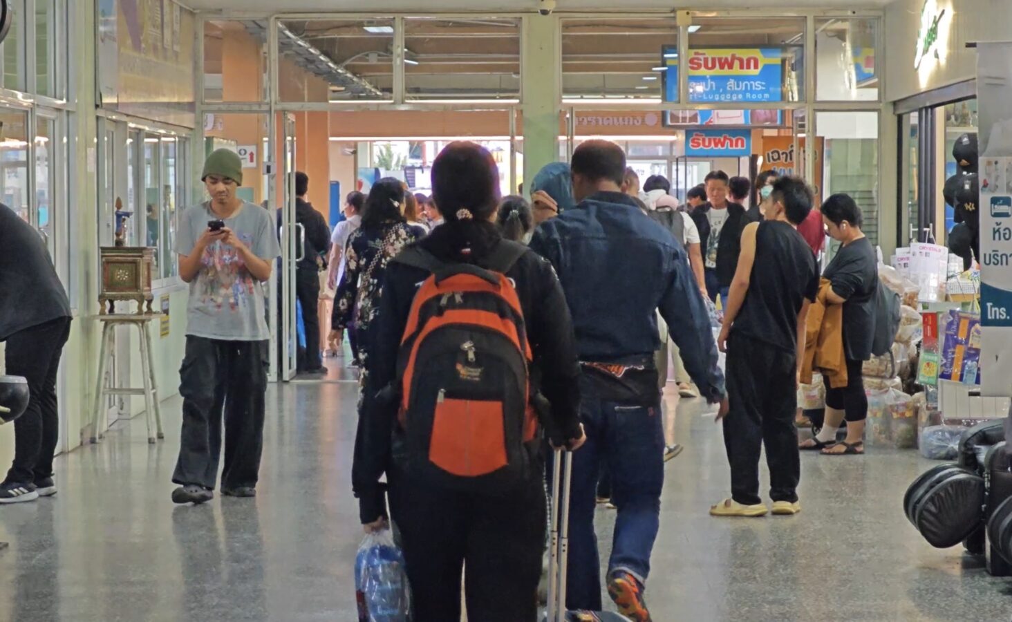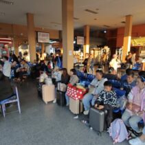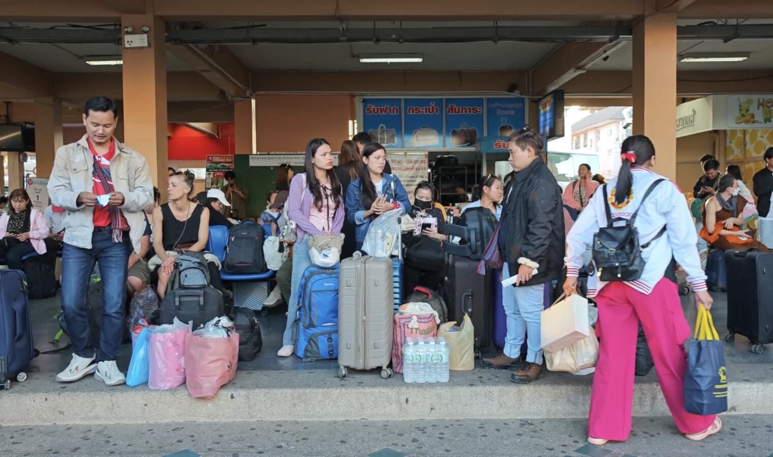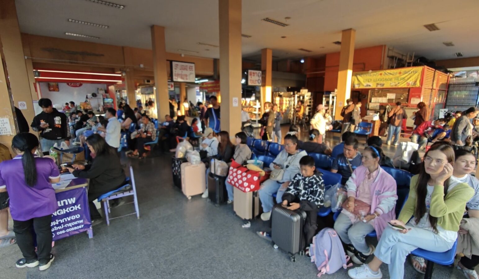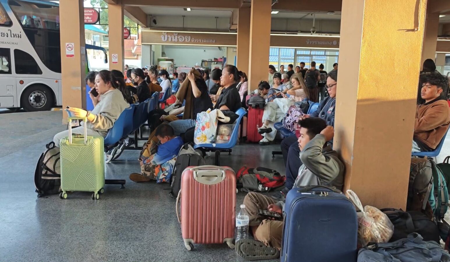 Chiang Mai Bus Terminal 3, or Arcade 3, was crowded with large numbers of people and tourists last night, waiting to board intercity coaches to travel back to work after enjoying holidays and New Year celebrations with their families and relatives. Most passengers had booked their tickets in advance and chose to travel at night so they could rest and sleep on the bus.