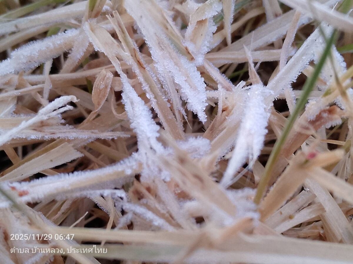 People in Chiang Mai are facing persistently cold weather, with temperatures across the lowland areas dropping to 11–15°C. At the summit of Doi Inthanon in Chom Thong district, the highest point in Thailand, conditions have turned bitterly cold — temperatures have fallen to 2°C, and frost (known locally as meoi khap) has appeared for the fourth consecutive day. The cold is so intense that dew on tables, chairs, and wooden surfaces has frozen into white ice crystals. Large numbers of tourists continue to travel up the mountain to experience the cold, with a chance that temperatures may reach 0°C in the coming days.