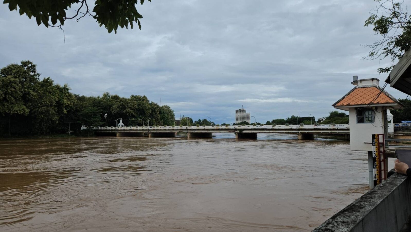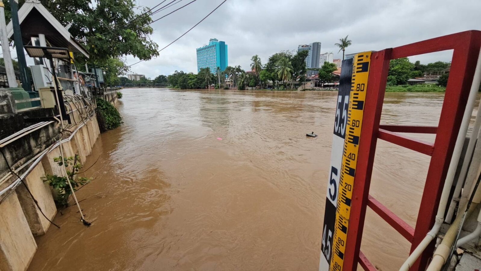 Although water levels are currently decreasing, heavy rain last night caused the river to rise higher than expected. The Chiang Mai Irrigation Project predicts that the maximum water level today will not exceed 3.70 meters.