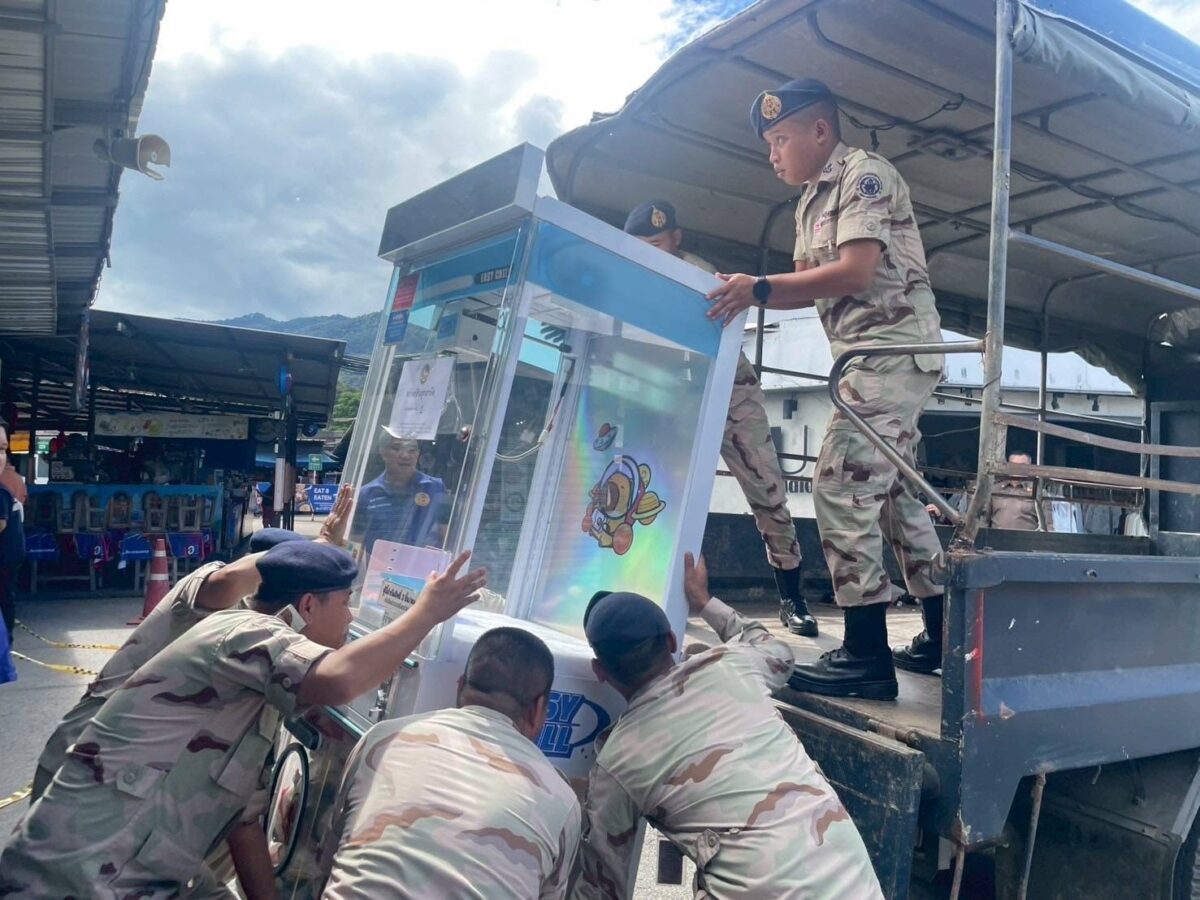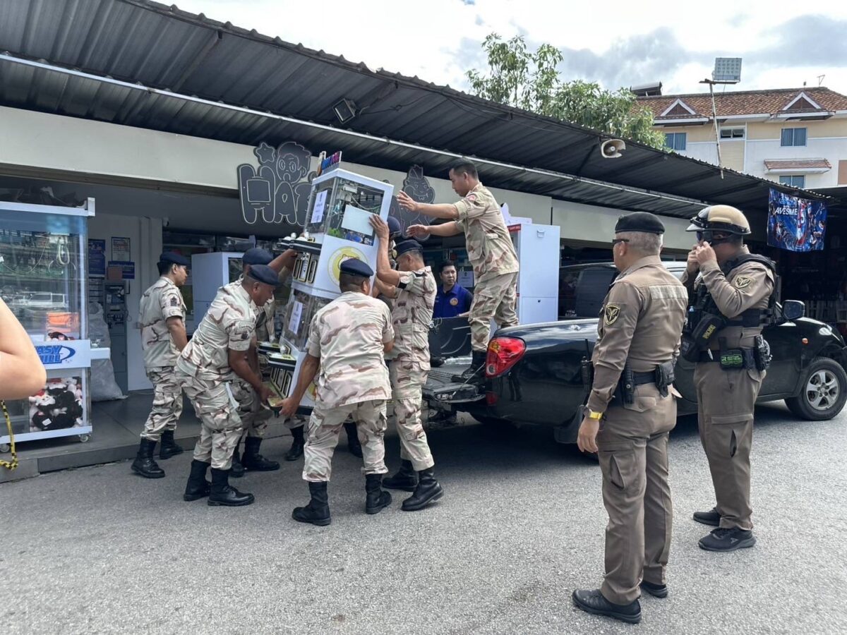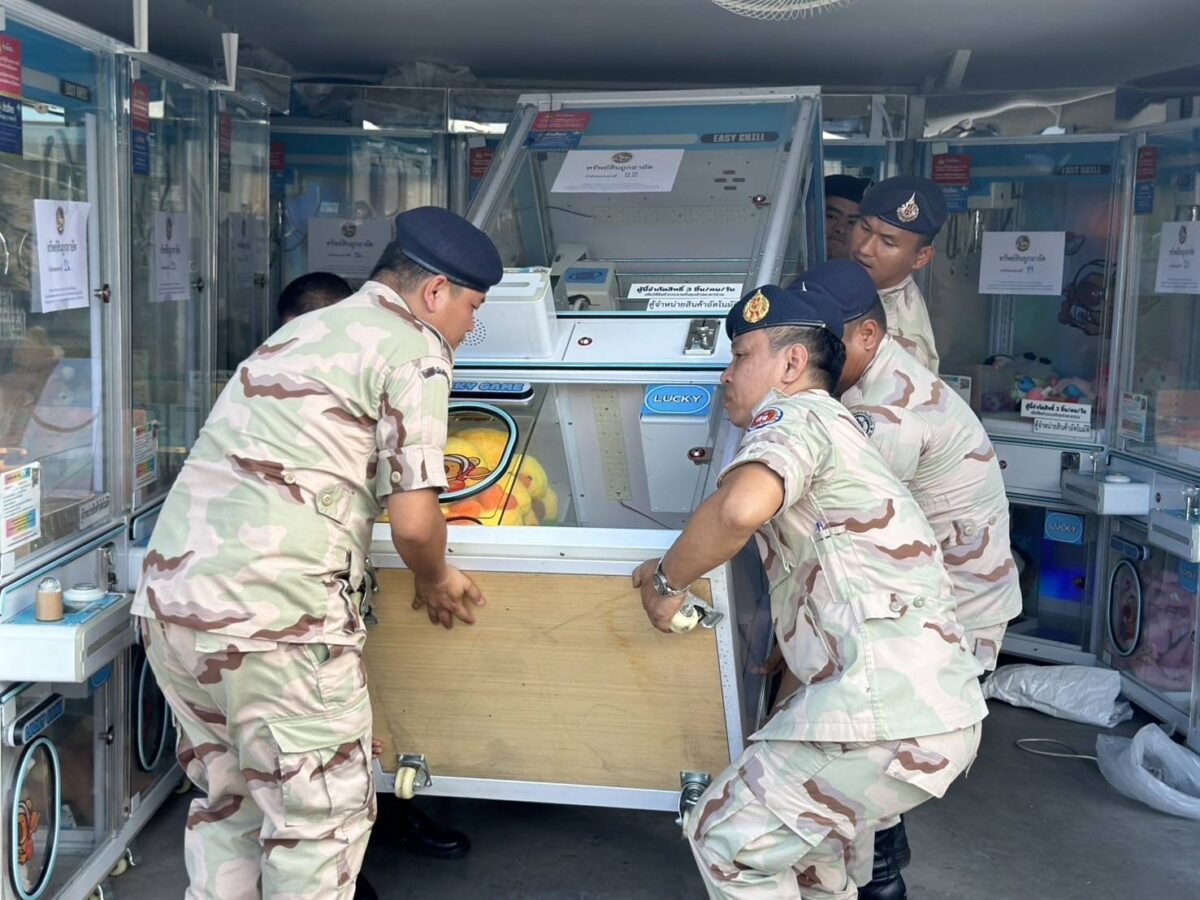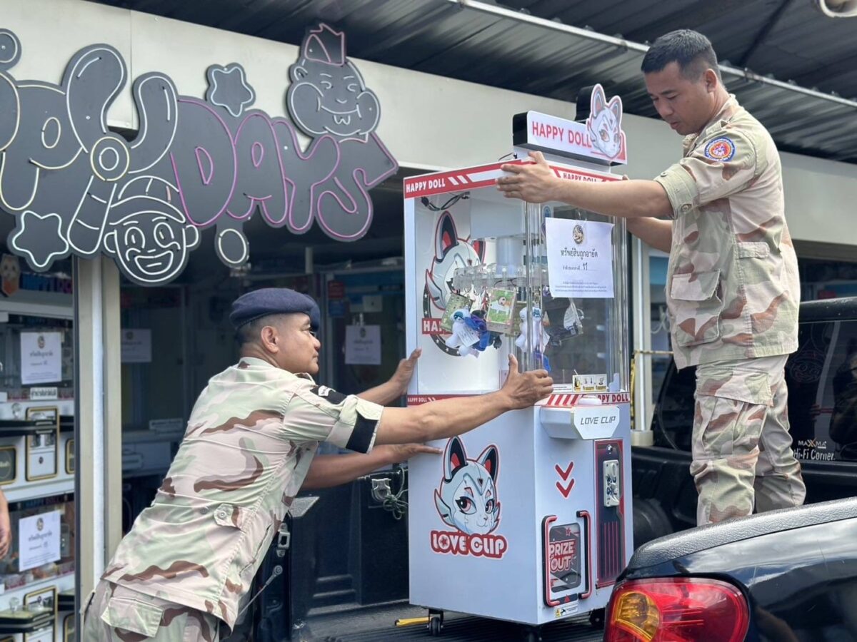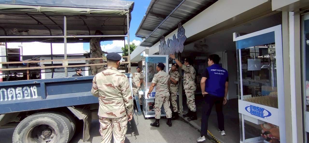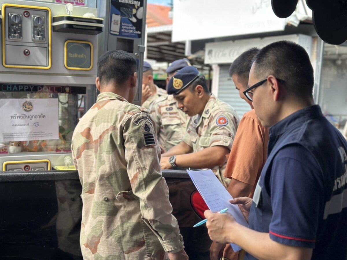 The Chiang Mai Operations Unit, together with the Superintendent of Chang Phueak Police Station and the Volunteer Defense Corps 1st Company, conducted an inspection of claw machine businesses at Malin Plaza in front of Chiang Mai University.