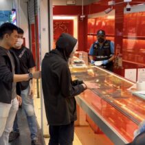 As can be seen in CCTV footage, the man had locked himself into a shopping centre over night with the aim of sneaking out of the second floor bathroom after the shops were closed. He then made his way to the gold shop on premises, breaking the door open, only to find that its manager had removed every piece of gold away and put it all in a safe.