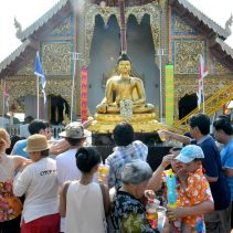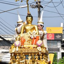 The procession will leave Viharn Lai Kham at Wat Phra Singh and travel to the Three Kings Monument for preparations. In the afternoon there will be procession to carry the images to various temples in Chiang Mai so that the people can bless it with sacred water. This is the Buddha Sihing’s annual journey outside the temple.