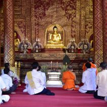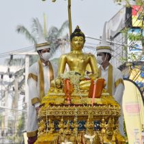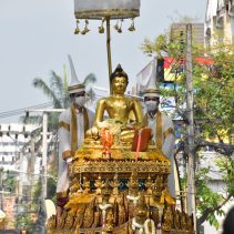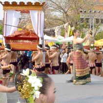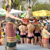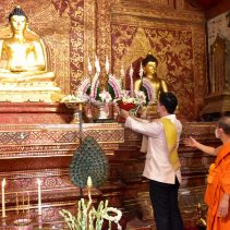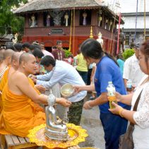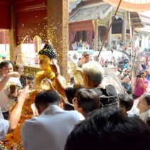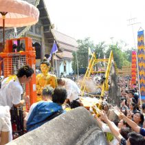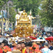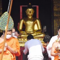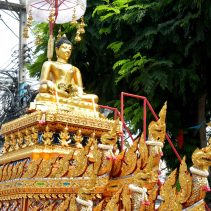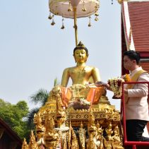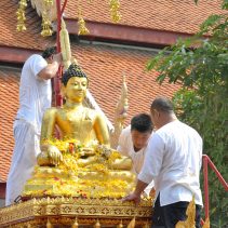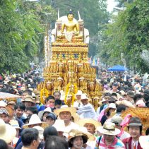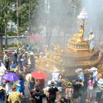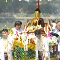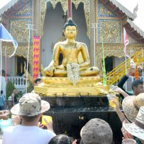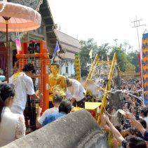 The procession will leave Viharn Lai Kham at Wat Phra Singh and travel to the Three Kings Monument for preparations. In the afternoon there will be procession to carry the images to various temples in Chiang Mai so that the people can bless it with sacred water. This is the Buddha Sihing’s annual journey outside the temple.