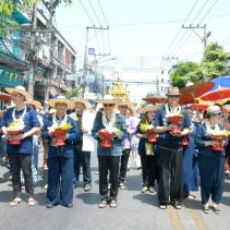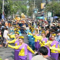 A parade will be held, carrying relics in worship of Phaya Mengrai, or King Mengrai the Great. There will be mong sheng and sabad chai drumming demonstrations and competition, a banana leaf offerings making contest, makbeng demonstration with folk plays, a sand pagoda making competition as well as a kad mua Northern-style food and crafts market.
