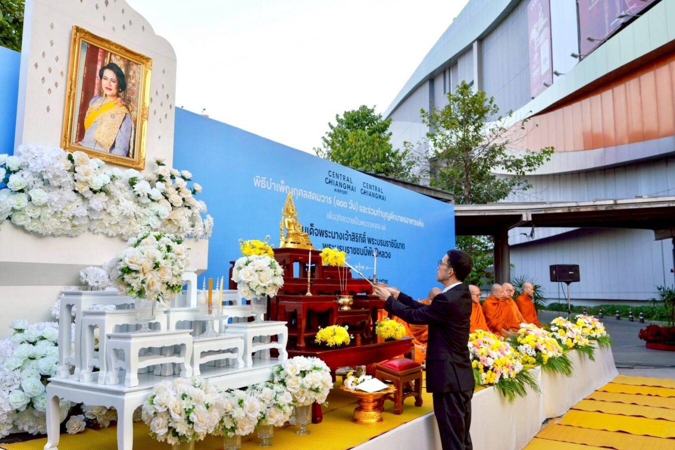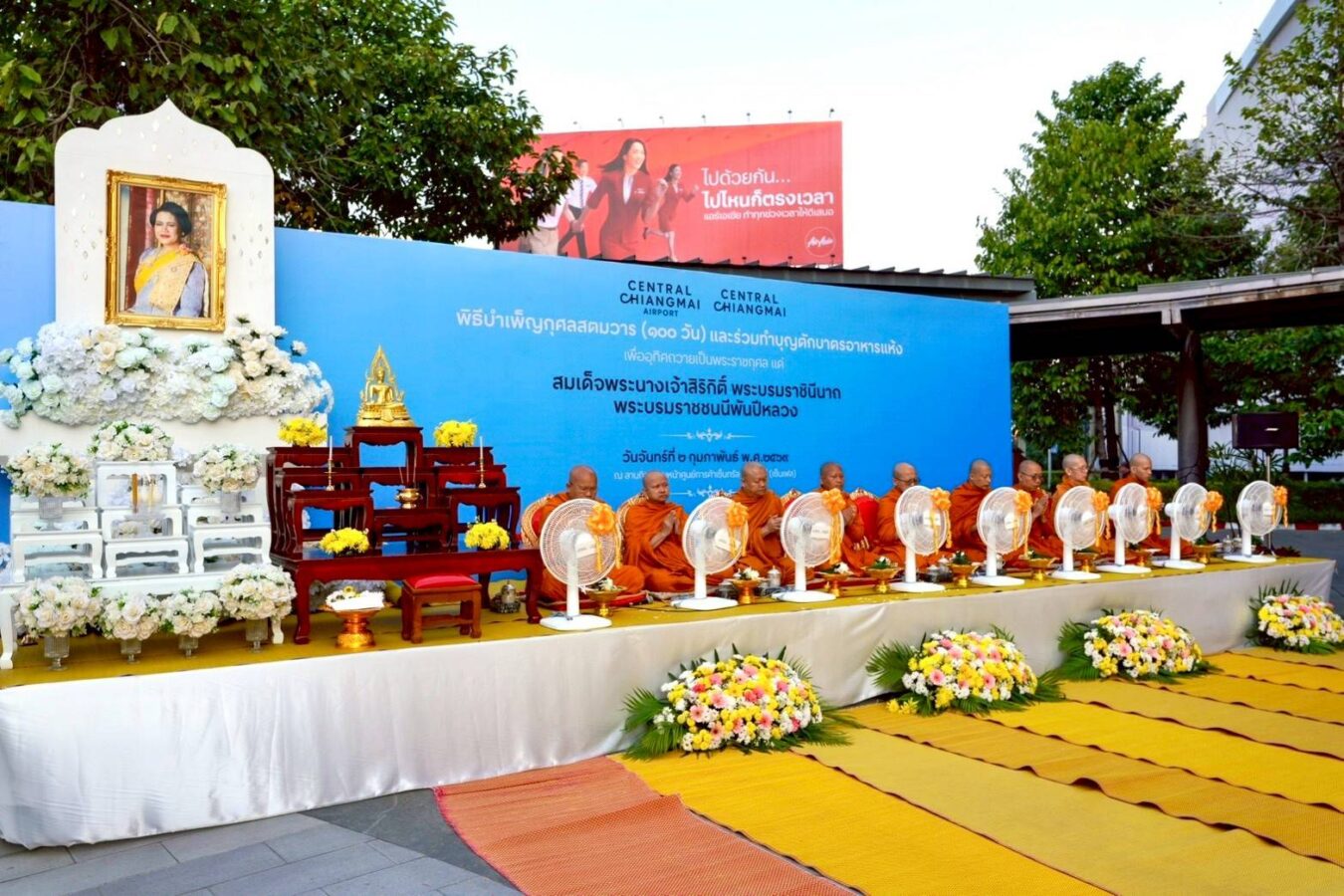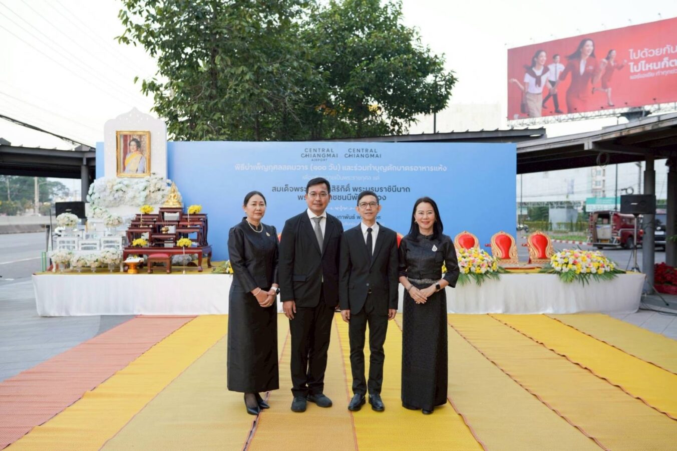 Executives and employees of Central Group, including representatives from Central Chiang Mai and Central Chiang Mai Airport, along with members of the public, participated in the 100-day merit-making ceremony and almsgiving held at the forecourt of Central Chiang Mai shopping centre. The ceremony was conducted to dedicate royal merit to Her Majesty Queen Sirikit The Queen Mother, as an expression of profound gratitude and reverence.