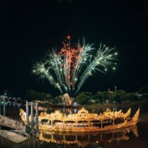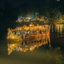 One of Thailand’s most popular contemporary artists, Ajarn Chalermchai was named Thailand’s National Artist of the Year in 2011 in lifelong recognition of his work. His latest design is inspired by series of paintings named ‘Dibba Yana Chitta’. The boat’s design depicts the journey from this world to the next and the vessel’s figurehead has been hand-carved into a mythical creature, symbolising the transport of humans along the river to heaven.