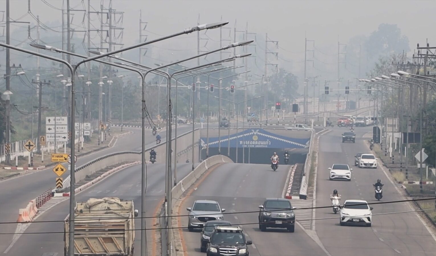 The Northern Royal Rainmaking Operations Centre today deployed six aircraft over Hang Dong and Hod districts in Chiang Mai and Li district in Lamphun, seeding clouds with dry ice and cold water spray to disperse the dense smog layer. Operations on 1st and 2nd April are reported to have produced some positive results, with improved dust dispersal in affected areas.