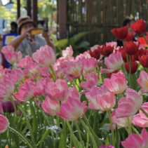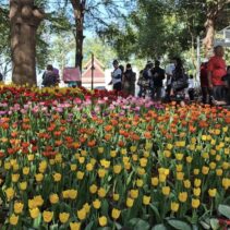 But the real show-stopper? A vast rainbow sea of tulips — reds, yellows, oranges, pinks, whites, purples — over 20,000 of them planted in layered rows so perfect you’d think someone arranged them with a ruler. It’s the sort of place where you pop in “just for a quick look” and accidentally take 200 photos.