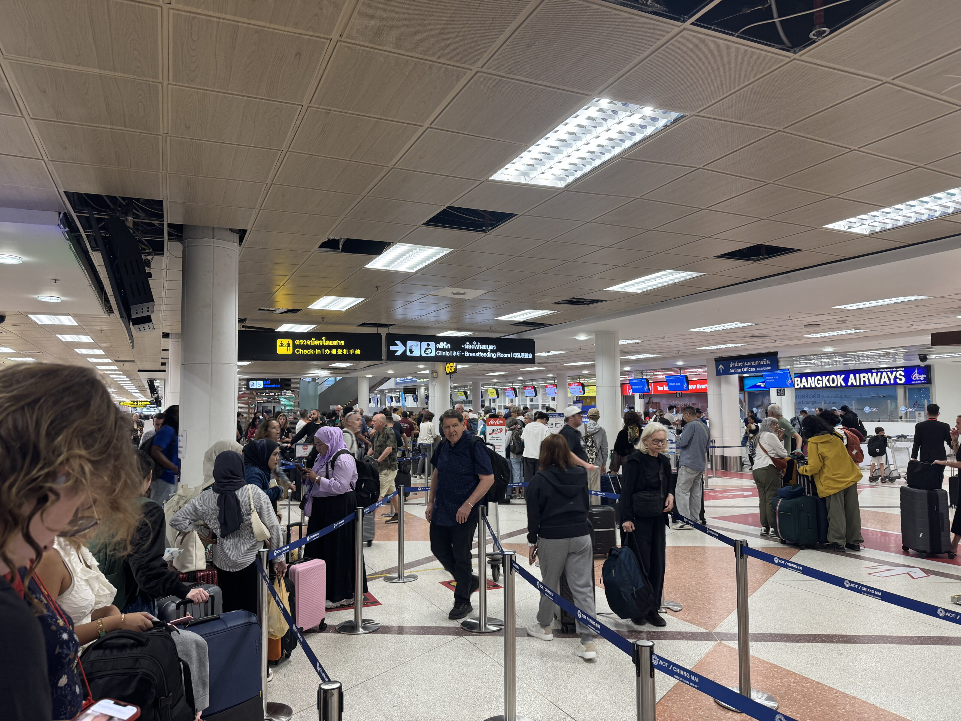 Chaos unfolded at Chiang Mai International Airport (CNX) this morning as travellers in the Domestic Terminal face severe bottlenecks at both check-in counters and security checkpoints.