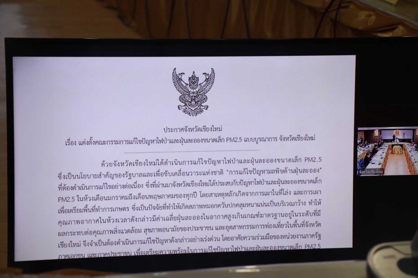 On 13 November 2025, at the Chiang Mai Provincial Hall, the Deputy Governor of Chiang Mai, chaired the first meeting of the Integrated Committee on Forest Fire and PM2.5 Pollution Prevention and Mitigation (No. 1/2025). Representatives from relevant government agencies attended both in person and via video conference.